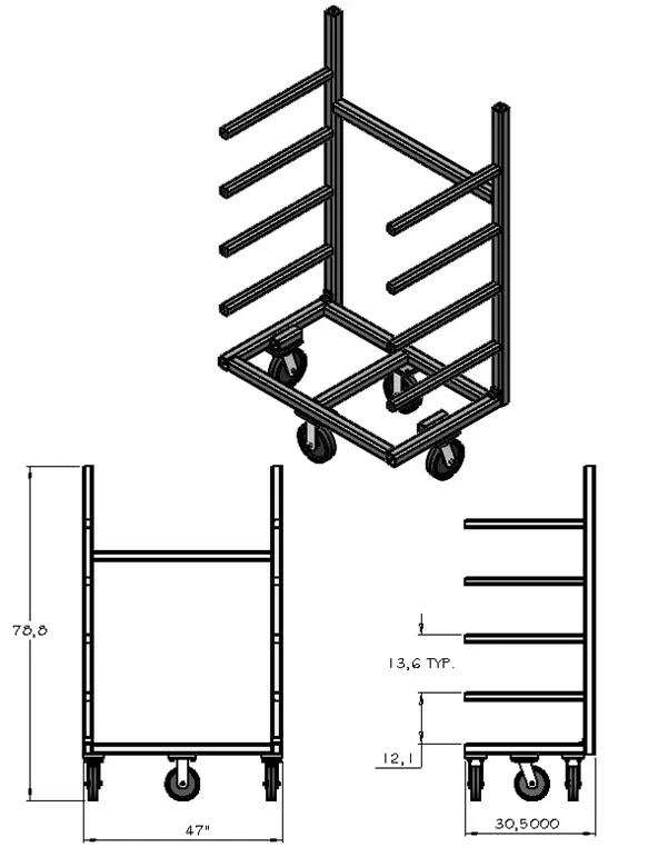 - Create a buffer zone for the catcher in between the parts being cut and the material handling carts.